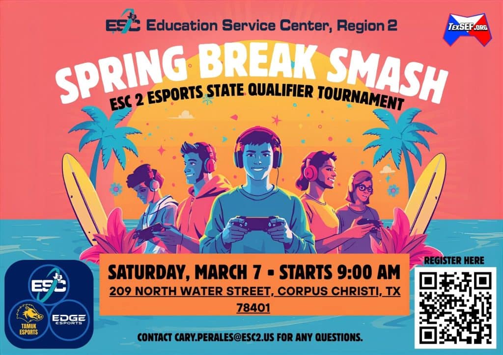 Spring Break SMASH 2026 – A TexSEF State Qualifier Tournament – is the VERY FIRST Scholastic Esports Tournament ever held in Corpus Christi!